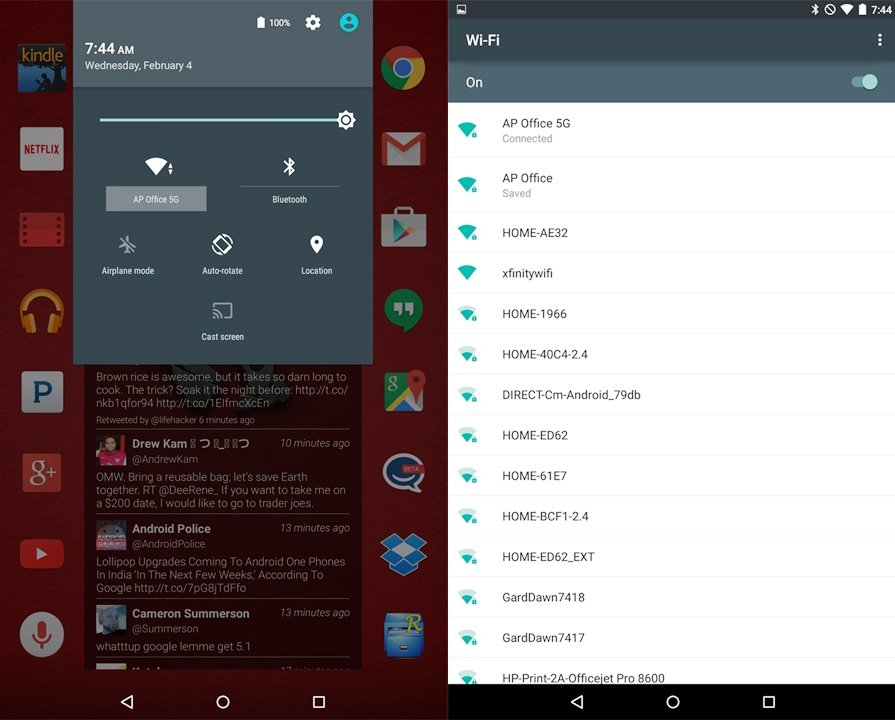 Como siempre, desde Android Police encontramos las novedades, y así de rápidos, han publicado algunas novedades y características de la nueva actualización de Android 5.0.2 a Android 5.1, dando un gran salto. Ya han encontrado uno de los cambios más evidentes en la interfaz de usuario. Google ha ajustado el comportamiento de la conexión Wi-Fi y los ajustes de Bluetoth/Widgets desde el menú desplegable de configuración rápida de Lollipop para permitir a los usuarios conectarse a las redes o dispositivos sin entrar en el menú de configuración de página completa.