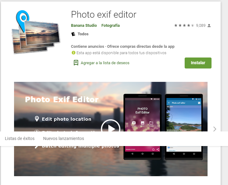 Esta aplicación se llama Photo Exif Editor y lo que hace es mostrar toda la información de una fotografía incluso nos comparte la ubicación donde fue tomada dicha foto gracias a la etiqueta de geolocalización. Si quieres sabe la información de una foto que te enviaron pues esta app es una excelente alternativa pero tambien es muy útil porque sirve para modificar la información de los metadatos ósea que te muestra la información real pero tambien te ayuda a modificar esa información para que puedas enviar una foto con total seguridad.