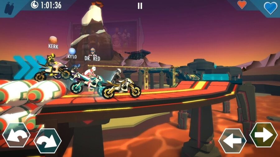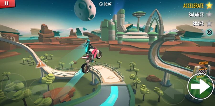 Los videojuegos que podemos descargar e instalar en nuestros celulares o tabletas son una buena opción cuando buscamos en qué distraernos y pasar el tiempo. Una de las categorías de videojuegos en la que nos podemos distraer es la de carreras ya sea de motos o carros, es una buena opción para quienes nos gusta la velocidad y la adrenalina. Desafía las leyes de gravedad, compite en diferentes pistas y supera obstáculos con tus habilidades al momento de conducir una motocicleta en este increíble juego de carrera de motos para tu celular que se llama Gravity Rider: Juego de Motos.