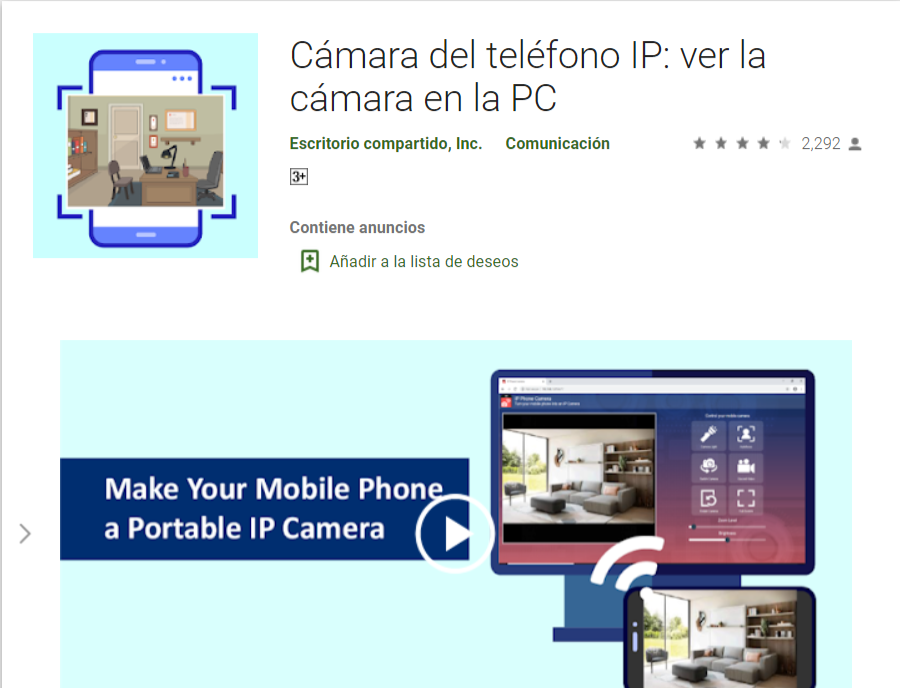 La aplicación maravilla que te va a ayudar a convertir tu celular android en una cámara espía, de seguridad o webcam es CAMARA DE TELEFONO IP esta aplicación es completamente gratis y la puedes descargar desde la play estore pero a continuación te voy a compartir el enlace de descarga para que puedas tener rápidamente esta aplicación en tu teléfono celular.