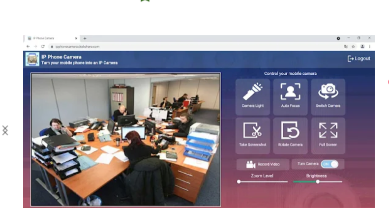 Ahora desde la computadora vamos a ver la cámara ya activa entonces vamos a encontrar diferentes funciones de monitoreo como por ejemplo prender la luz flash, cambiar de cámara trasera a cámara frontal, capturar un video, hacer zoom en la cámara entre otras mas.